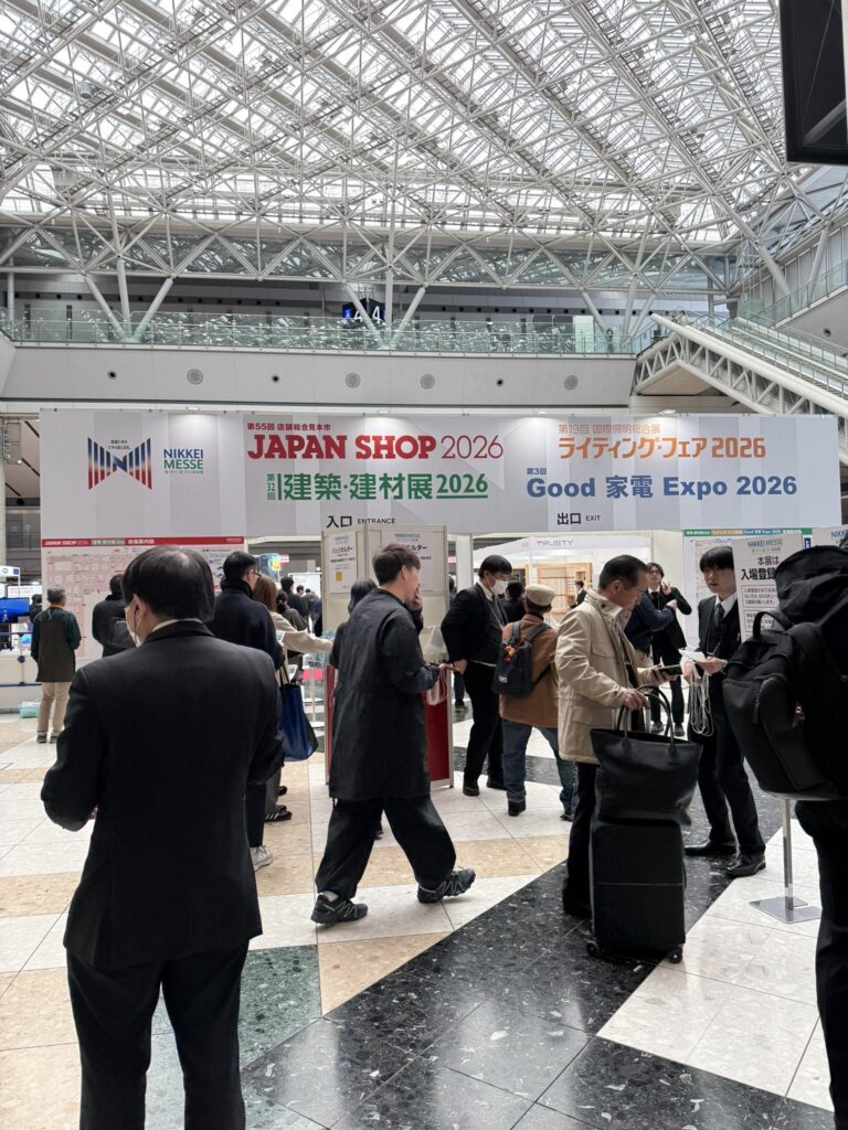 JAPAN SHOPは、店舗や商業施設の空間づくりに関わる素材や設備、デザインなどが集まる展示会で、建築や内装、外部空間など、さまざまな分野のメーカーが出展しています。