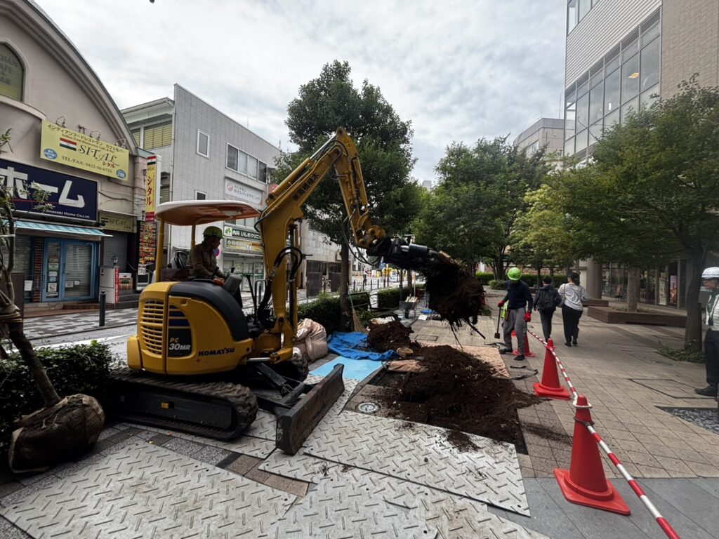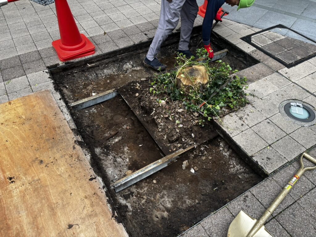 伐根作業も、限られたスペースの中でコンパクトに行うことで、