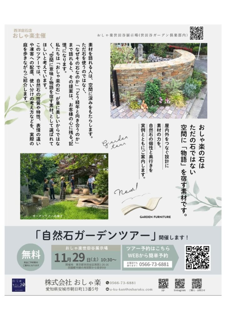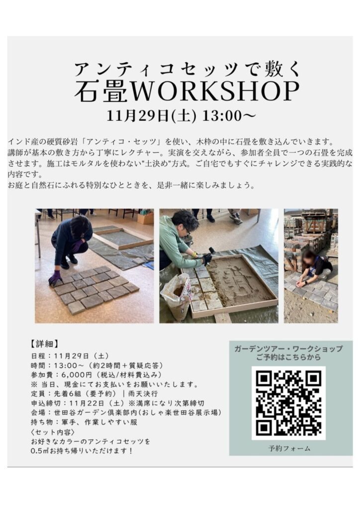 \ 11/29(土) 開催 // 石畳ワークショップ×ガーデンツアーの特別な一日