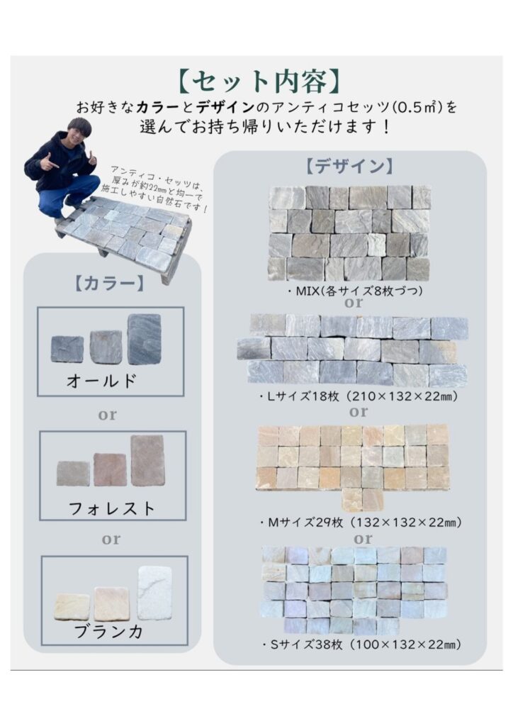 お好きなカラーのアンティコセッツを 0.5㎡分、お持ち帰りいただけます!